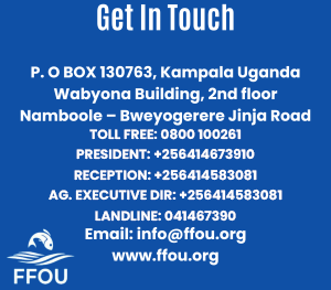 FFOU works with strategic partners such as GIZ Responsible Fisheries Business Chain Project (RFBCP)-Uganda, Food and Agricultural Organization (FAO Uganda), Directorate of Fisheries Resources Under the Ministry of Agriculture, Animal Industry and Fisheries (MAAIF), Uganda Co-operative Alliance and other national associations within the region to promote responsible fishing by guiding its members to comply with an agreed ethical code of conduct to observe the fishing standards and the national laws all through the work process.